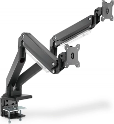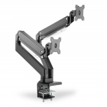 Holderen gør det muligt at vippe skærmen -45°/+45°, horisontalt sving op til -180°/+180° og drejning af frontpanelet -90°/+90°. Takket være gasfjederen er det nemt og glat at justere skærmen til den ønskede position.