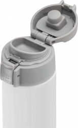 Det praktiske knap-låg med lås er 100% tæt, så der ikke er risiko for spild i tasken. Låget kan skilles helt ad for grundig rengøring, og hele kruset er egnet til opvaskemaskine. Kroppen i rustfrit stål 18/10 er modstandsdygtig over for korrosion og lugte, plastdelene er BPA-fri, og silikonepakningen sikrer langvarig pålidelighed.