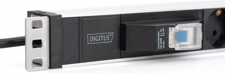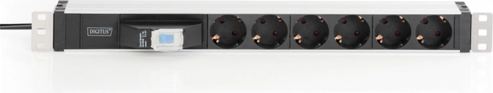 Rack PDU-liste til 19'' rack DIGITUS, 6x Schuko, 2 m kabel, afbryder, aluminiumsprofil