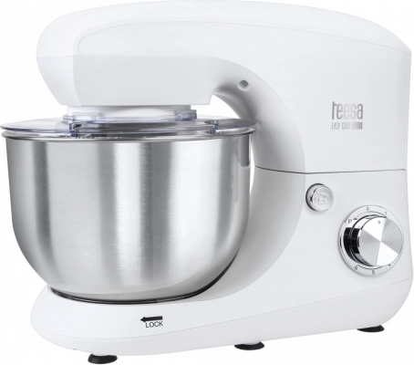 Køkkenmaskinen Teesa Easy Cook Single er en pålidelig hjælper til daglig bagning og mere krævende opskrifter. Den kraftige 1400 W motor og 6 hastighedstrin lader dig præcist tilpasse effekten fra skånsom blanding til intensiv piskning og æltning.