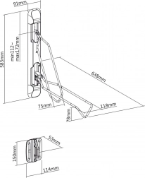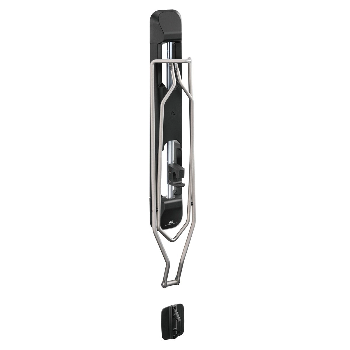 Holderen sikrer stabilitet og sikkerhed og holder cyklen i lodret position. Takket være de fem justerbare højdeniveauer tilpasses den forskellige cykelstørrelser. Når cyklen er taget ned, kan holderen foldes sammen for at spare endnu mere plads.