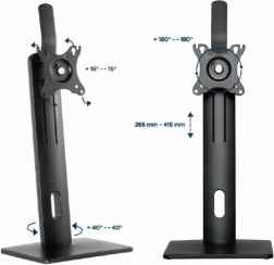 Monitorstativet er ideelt for alle, der har brug for at skabe et ergonomisk arbejdsmiljø. Det kompakte design sparer plads på skrivebordet og tilbyder trinløs højdetilpasning i området fra 265 mm til 415 mm.