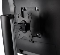 Den stabile base sikrer sikker placering på enhver skrivebord, og den integrerede kabelstyringsløsning garanterer et organiseret arbejdsområde. Stativet er kompatibelt med VESA-standarder 100 x 100 mm og 75 x 75 mm.