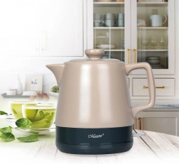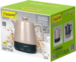 Oplev bekvem vandkogning med den keramiske elkedel MAESTRO, der forener tidløst udseende med praktisk udstyr til daglig brug. Kapaciteten på 1 l er ideel til mindre husholdninger og kontorer, og effekten på 1200 W sikrer hurtig og støjsvag opvarmning. Det beige keramiske kabinet er robust og let at rengøre.