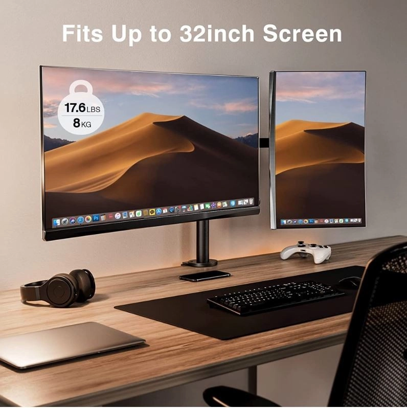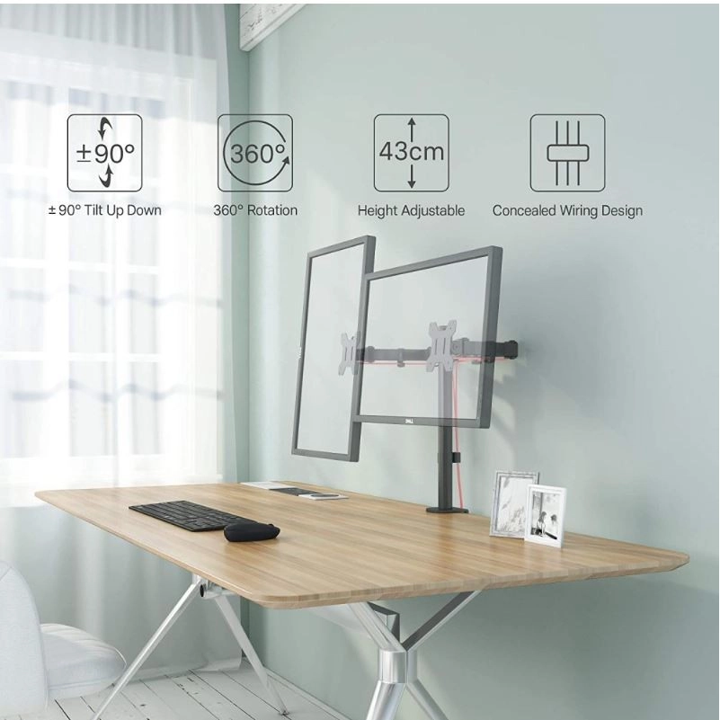 Det dobbelte beslag tilbyder jævn rotation og tilt af skærmene i alle retninger, hvilket gør det nemt at finde den optimale betragtningsvinkel.