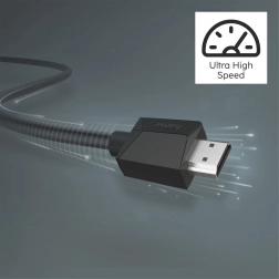 Nyd skarpt og flydende billede i 4K-opløsning 4096 × 2160 med HDR-understøttelse, som optimerer kontrast, lysstyrke og farvedybde. Kablet er designet til pålidelig, tabsfri overførsel takket være kvalitetsmaterialer og flerlags afskærmning.