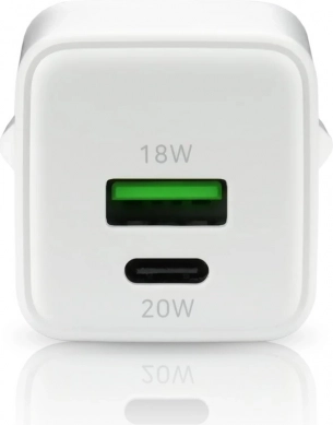GaN vægoplader 1x USB, 1x USB-C 20W QC3.0 hvid