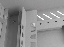 Skabet er fremstillet af høj kvalitet stål, hvilket garanterer stabilitet og lang levetid. To ekstra bageste monteringsskinner øger sikkerheden og gør installationen af forskelligt udstyr lettere.