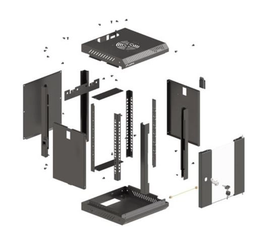 - Yderligere funktioner: Kabelåbninger i top- og bundpanel, jordingskabel medfølger, glasfrontdør.