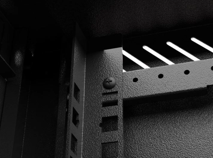 - Forbedret funktionalitet: Skabene indeholder 4 vertikale monteringsskinner, mulighed for installation af ventilator uden at begrænse pladsen til udstyr samt sideadgang.