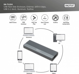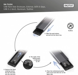 Installationen klares på et øjeblik – uden skruer og værktøj. De populære M.2‑størrelser (2230/2242/2260/2280) understøttes, så du nemt kan bruge de fleste SATA M.2 SSD’er på op til 8 TB. Takket være bagudkompatibilitet med USB 3.1/3.0/2.0/1.1 kan boksen tilsluttes næsten enhver enhed.