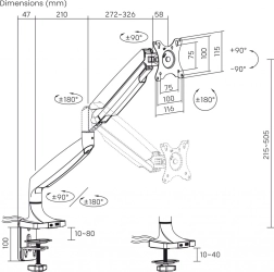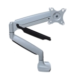 Det gasdæmpede bordbeslag til skærme er designet til at opfylde behovene for større og tungere skærme, inklusive buede modeller. Det gør det nemt at justere skærmens vinkel og position uden brug af værktøj. Der er et system til kabelskjul, og det forhindrer uønsket bevægelse af skærmen.