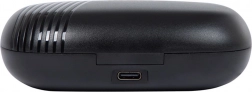 Det praktiske LED-display på ladeetuiet viser tydeligt batteristatus for hver enkelt høretelefon og for etuiet. Når de løber tør, lægger du dem blot i etuiet og fortsætter med at lytte – uden stikkontakt, takket være det indbyggede batteri. Opladning sker nemt via USB‑C.