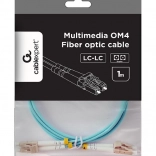 Højtydende optisk kabel OM4, ideelt til 10/40/100G netværk. Tilbyder hurtig og pålidelig forbindelse takket være LC/LC konnektorer.