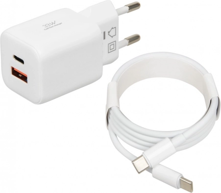 Med sine to porte, USB-C og USB-A, muliggør den hurtig og sikker opladning af flere enheder samtidigt. Det medfølgende USB-C til USB-C-kabel gør tilslutningen nem.