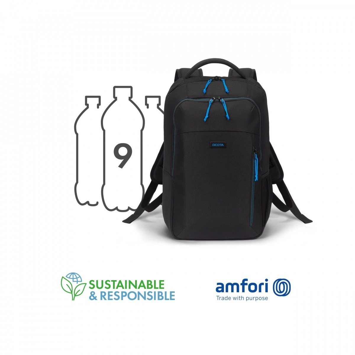 Rygsækken er fremstillet af genanvendt PET (9 flasker), er modstandsdygtig over for daglig brug og kompletteres af kvalitetslynlåse, metal-logo og diskrete blå detaljer.