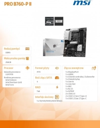 Øg produktiviteten med MSI PRO B760-P II til sokkel LGA 1700. Den tilbyder DDR5 op til 7000+ MHz, hurtig lagring med Lightning Gen 4 M.2, PCIe 4.0, 2,5G LAN og omfattende tilslutning inkl. Intel Turbo USB 10 Gb/s. Premium køling og 12+1-faset strømforsyning sikrer stabilitet til krævende arbejde og gaming.