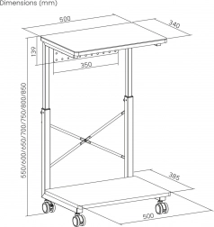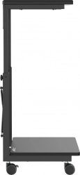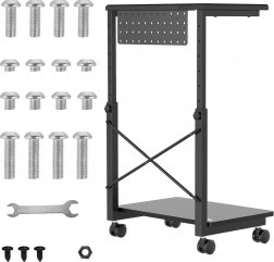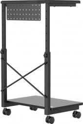 Dette rullestativ er ideelt for dem, der ofte har brug for at ændre computerens placering eller har begrænset arbejdsplads. Med mulighed for højdejustering fra 550 til 850 mm kan det tilpasses forskellige typer borde og arbejdspladser, hvilket markant øger fleksibiliteten. Derudover tilbyder den praktiske hylde mulighed for opbevaring af tilbehør eller kan fungere som underlag til en bærbar.
