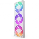 NZXT F360 RGB Core kombinerer tre 120 mm blæsere i én ramme, hvilket gør montering, kabelføring og lysstyring betydeligt enklere. Det er nok at tilslutte ét kabel til en NZXT-controller (sælges separat) og styre alt i NZXT CAM, eller bruge et 5V ARGB-header på bundkortet via den medfølgende splitter.