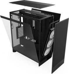 H7 Flow RGB kabinettet revolutionerer GPU-køling i klassiske mid-tower-kabinetter. Det muliggør montering af op til tre bundblæsere, hvilket giver direkte køling af GPU’en samtidig med at den slanke konstruktion bevares.