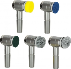 Sættet med fem hoveder dækker alle rengøringsscenarier: svamp til polering, 2× tekstilpad til sarte overflader, nylonbørste til fuger og genstridigt snavs samt skraber til belægninger. Et quick-release-system sikrer lynhurtigt og ubesværet skift af hoveder.