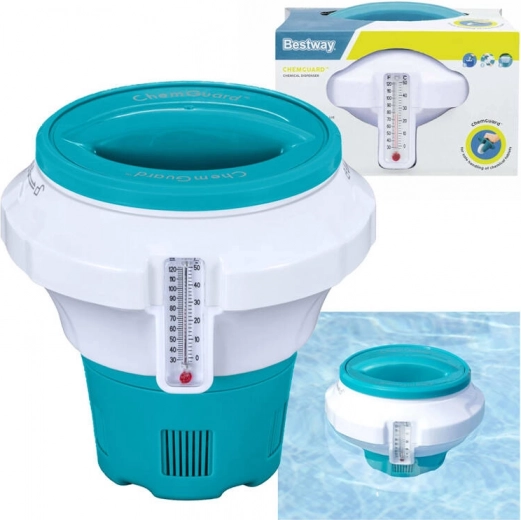 BESTWAY kemidoseringsenhed er en praktisk og uundværlig hjælper for enhver pool-ejer. Denne flydende dispenser sikrer effektiv distribution af kemikalier og opretholder vandets renhed og kvalitet.