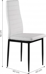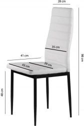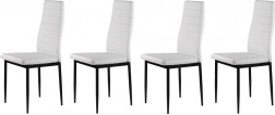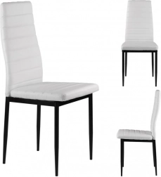 Vores sæt spisestuestole er designet til at supplere din indretning perfekt. Det hvide økolæderbetræk og de lige, sorte ben skaber et stilfuldt og moderne design, der passer til enhver type interiør.