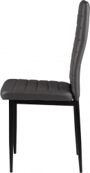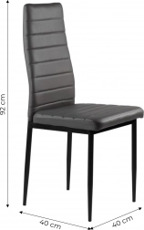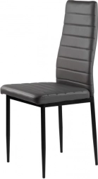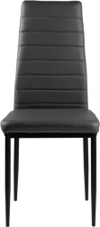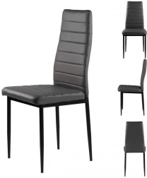 Sættet med fire stole fuldender din spise- eller stueindretning takket være det moderne design med ergonomiske elementer. Grå polstring i økolæder med vandrette stikninger ser ikke kun godt ud, men giver også maksimal siddekomfort. Sorte metalben sikrer stabilitet og holdbarhed.