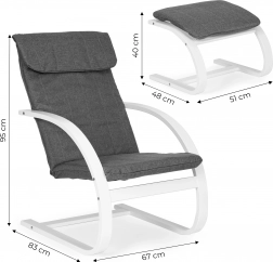 Stolen leveres med en komfortabel fodskammel, så du kan strække benene og slappe helt af. Specielt tekstil og blødt skum sikrer maksimal siddekomfort.