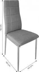 Dette sæt med 4 polstrede stole giver ikke kun stil, men også komfort. Takket være det kvalitetsstof, der er behageligt at røre ved, og de moderne overflader passer stolene perfekt til familiebordet i spisestuen og køkkenet.