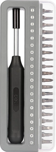 Deli Tools sæt med præcisionsskruetrækkere tilbyder et bredt udvalg af bits, herunder flade, krydskærv, torx, sekskant, Y-formede og flere andre, som er velegnede til forskellige anvendelser fra reparation af spilkonsoller til smartphones.