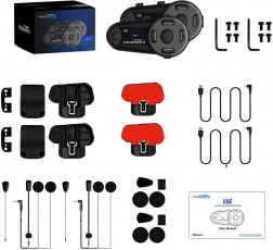 Udstyr dig med Fodsports V6S og hold kontakt med andre motorcyklister eller familien uden at miste fokus på vejen. Dette sæt indeholder to intercoms, som leverer krystalklar lyd takket være avanceret CVC-støjreduktionsteknologi og en rækkevidde på op til 1000 meter.