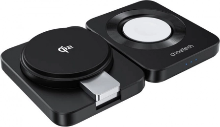 Den sammenklappelige magnetiske 3-i-1 oplader CHOETECH Qi2 lader dig oplade iPhone, Apple Watch og AirPods samtidig med op til 15 W til iPhone og 5 W til ur og høretelefoner. Takket være Qi2-teknologi, magnetisk fastgørelse og avancerede beskyttelser får du hurtig, sikker og bekvem opladning derhjemme og på farten.