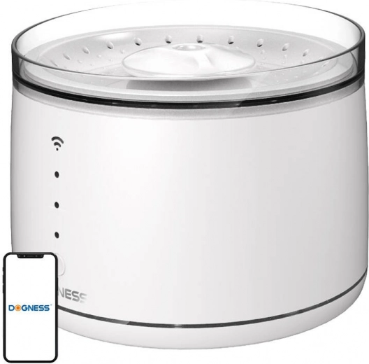 Den praktiske konstruktion i robust ABS er let at skille ad og rengøre. LED-indikator informerer om status, og når vandstanden falder, slukker fontænen automatisk for at beskytte pumpen. Forbindelse via Wi‑Fi 2,4 GHz sikrer pålidelig styring i appen til Android og iOS.