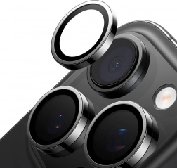 Giv din iPhone langvarig linsebeskyttelse og et professionelt look med den sorte Lensguard-ramme, der matcher telefonens design.