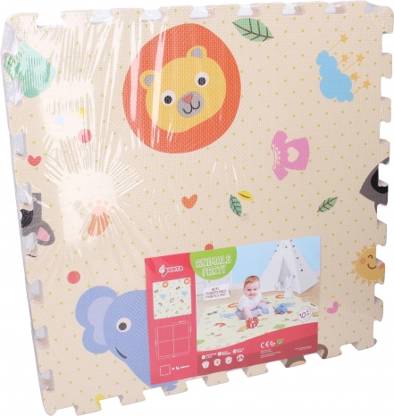 Dette sæt bløde blokke er ideelt til legeområder, børnehaver og hjemmekroge. De store mål på 60 × 60 cm gør det nemt hurtigt at skabe en blød og sikker overflade til kravlen, sidde eller simple byggeaktiviteter. Søde dyremotiver stimulerer fantasien og sanserne.