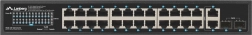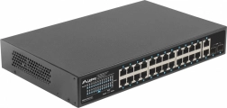 Pålidelig LANBERG-switch med 24x Gigabit PoE+, 2x Gigabit uplink og 2x SFP tilbyder reelt PoE-budget på 250 W, udvidet rækkevidde op til 250 m i EXTEND-tilstand og 4 kV beskyttelse mod overspænding – ideel til kamerasystemer, IP/VoIP og virksomhedsnetværk.