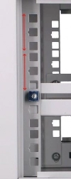 Højdemarkeringerne 4U på skinnerne forenkler monteringen, og sidepaneler med snaplås giver hurtig adgang. Låse og nøgler medfølger i pakken.