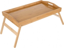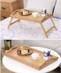 Overfladen af naturligt bambus er glat, let at rengøre og absorberer ikke lugte. Forhøjede kanter og praktiske sidehåndtag gør det nemt at bære og forhindrer, at ting glider af. Efter brug folder du benene sammen, og bordet kan opbevares i skabet, under sengen eller bag sofaen.