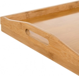 Den store flade med forhøjede kanter giver sikkerhed ved servering og arbejde på laptoppen. Bambuskonstruktionen bærer op til 5 kg og forhindrer uønsket vaklen.