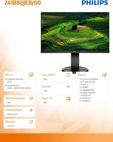 Oplev en ny synsvinkel med Philips 23,8"-skærmen med Pivot-funktion, som er udstyret med et IPS-panel for fremragende farvenøjagtighed og brede betragtningsvinkler.