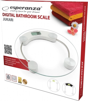 Bevar overblikket over din form med personvægten ESPERANZA JUKARI. Den kombinerer moderne design, pålidelig nøjagtighed og nem betjening. Takket være den kompakte konstruktion passer den i ethvert badeværelse og giver hurtige resultater med et enkelt trin.