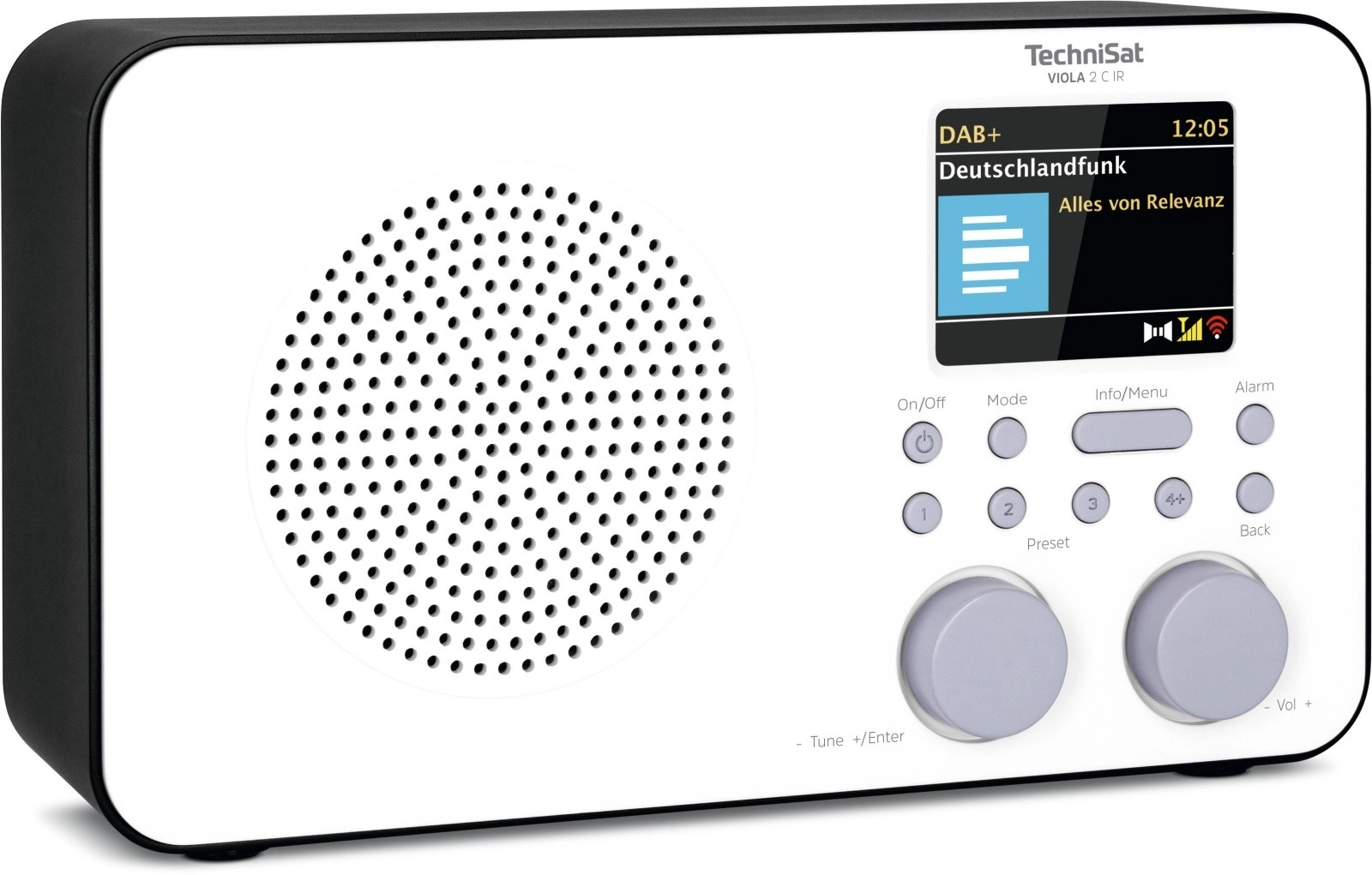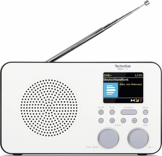 Oplev det kompakte VIOLA 2 C IR med support til DAB+, FM og internetradio. Den store 2,4" farveskærm, nem betjening, Wi‑Fi til podcasts og streams, integreret højttaler, hovedtelefonudgang og dobbelt alarm gør denne model til en fremragende ledsager hjemme og på farten.