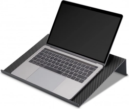\nDen elegante overflade i carbon-look tager sig godt ud på ethvert skrivebord. Skridsikre gummipuder giver stabilitet og beskytter mod ridser. Velegnet til bærbare op til 18,4″.