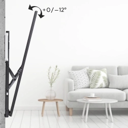 Hama LCD/LED Motion XL er det ideelle valg for dig, der søger en praktisk og elegant løsning til at placere dit tv. Det er designet til at muliggøre justering af betragtningsvinklen med hældning op til 12°. Takket være en minimal afstand til væggen på kun 2,8 cm bidrager det til et moderne interiørdesign.