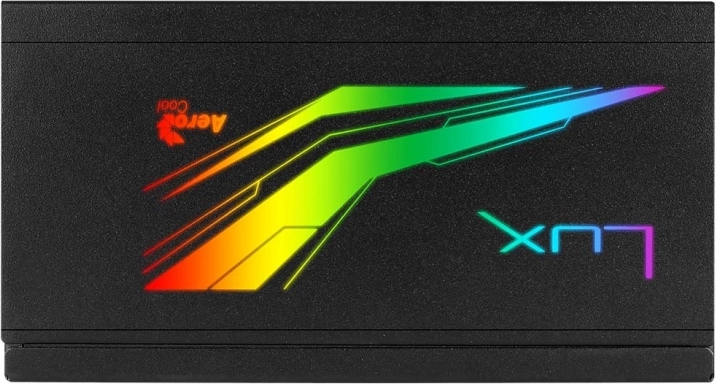 AeroCool LUX RGB 750W kombinerer høj effektivitet og moderne design. Takket være 80 Plus 230V EU Bronze-certificering leverer den økonomisk og stabil drift, mens adresserbar RGB-belysning (5 V ARGB) gør det muligt at matche strømforsyningen med øvrige komponenter og skabe en harmonisk belysning i hele systemet.
