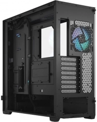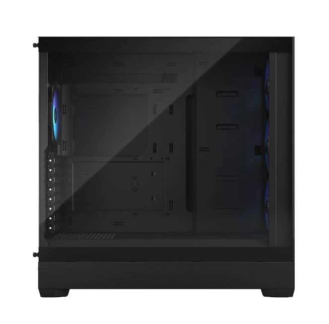 Sidepanelet af hærdet glas gør det muligt elegant at fremvise komponenter og RGB-belysning. Kabinettet understøtter op til fire 3,5" HDD og seks 2,5" SSD (eller tre 3,5" HDD og fem 2,5" SSD ved brug af en 5,25" optisk plads), så det nemt opfylder kravene til lagerkapacitet.