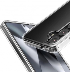 Crystal Shield er et gennemsigtigt etui designet til et rent look og høj holdbarhed. Den hårde bagside i polycarbonat beskytter mod ridser og tab af glans, mens den fleksible TPU-ramme gør det nemt at montere, forbedrer grebssikkerheden og forhindrer, at telefonen glider ud af hånden. Takket være UV-beskyttelsen forbliver bagsiden klar over tid uden uønsket gulning.