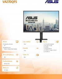 ASUS VA27DQFS kombinerer rent design og praktiske funktioner til det moderne kontor og hjemmekontor. Med 27" diagonal og IPS-teknologi får du et skarpt billede med ensartet farvegengivelse og brede betragtningsvinkler, mens opdateringsfrekvensen på 100 Hz giver mere flydende scrolling, bedre læsbarhed og en behagelig videooplevelse.