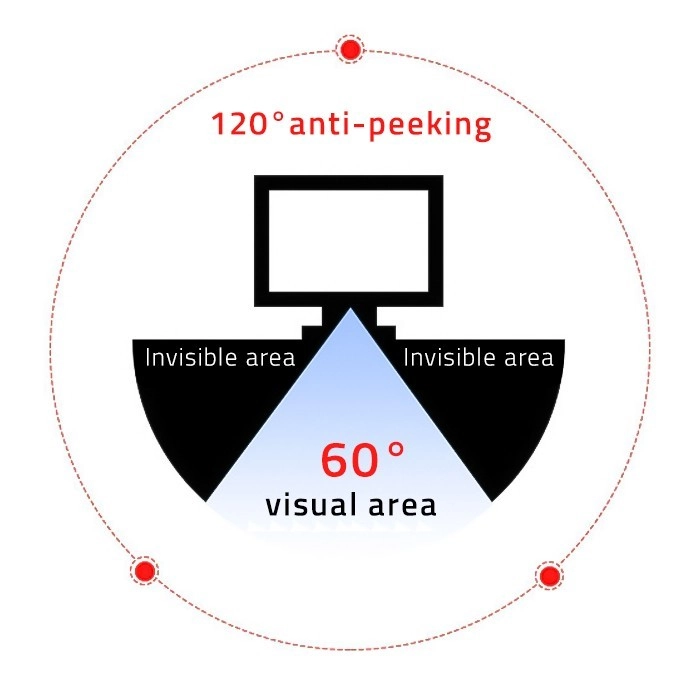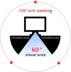 Micro-louvre-teknologien sikrer, at billedet er klart synligt forfra, mens den blokerer uønskede sideblik. Når betragtningsvinklen når 30 grader, bliver billedet helt mørkt, hvilket garanterer perfekt privatliv.